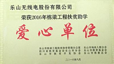 近日,四川省扶貧基金會(huì)樂山市分會(huì)、樂山市扶貧開發(fā)協(xié)會(huì)、樂山市棟梁工程扶貧助學(xué)管理辦公室一行三人專程來到樂山無線電股份有限公司,向公司頒發(fā)了“2016年棟梁工程扶貧助學(xué)愛心單位”的獎(jiǎng)牌及榮譽(yù)證書。